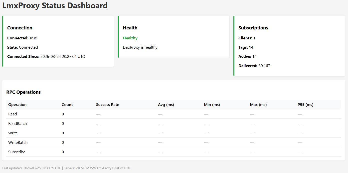 Full OPC UA server on .NET Framework 4.8 (x86) exposing AVEVA System Platform Galaxy tags via MXAccess. Mirrors Galaxy object hierarchy as OPC UA address space, translating contained-name browse paths to tag-name runtime references. Components implemented: - Configuration: AppConfiguration with 4 sections, validator - Domain: ConnectionState, Quality, Vtq, MxDataTypeMapper, error codes - MxAccess: StaComThread, MxAccessClient (partial classes), MxProxyAdapter using strongly-typed ArchestrA.MxAccess COM interop - Galaxy Repository: SQL queries (hierarchy, attributes, change detection), ChangeDetectionService with auto-rebuild on deploy - OPC UA Server: LmxNodeManager (CustomNodeManager2), LmxOpcUaServer, OpcUaServerHost with programmatic config, SecurityPolicy None - Status Dashboard: HTTP server with HTML/JSON/health endpoints - Integration: Full 14-step startup, graceful shutdown, component wiring 175 tests (174 unit + 1 integration), all passing. Co-Authored-By: Claude Opus 4.6 (1M context) <noreply@anthropic.com>